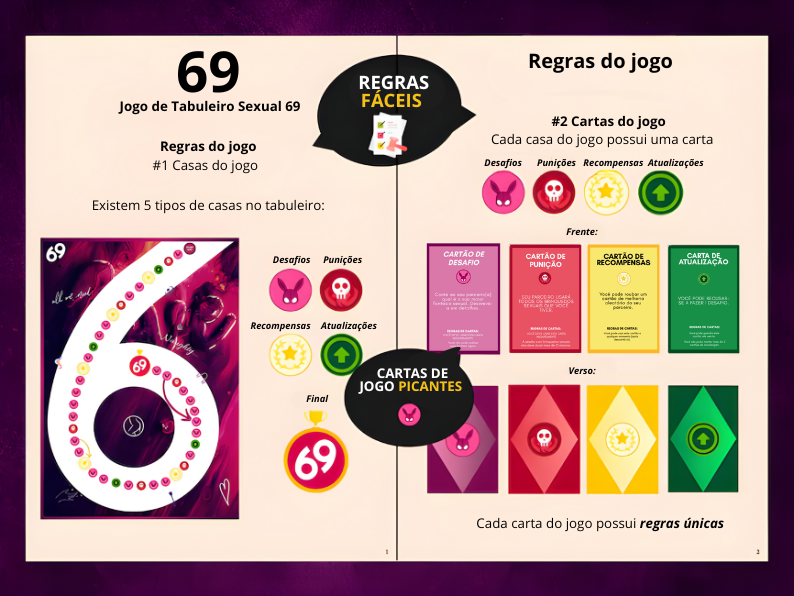 Esqueça os jogos simples de carta. O Jogo 69 é um tabuleiro estratégico com 69 casas exclusivas no formato dos números 6 e 9 (você sabe o que isso significa 😏).