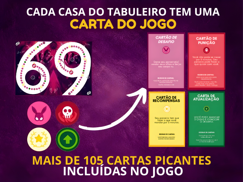 O Jogo 69 não é apenas mais um jogo… É uma EXPERIÊNCIA COMPLETA que leva o casal a explorar novos níveis de intimidade, ousadia e prazer.